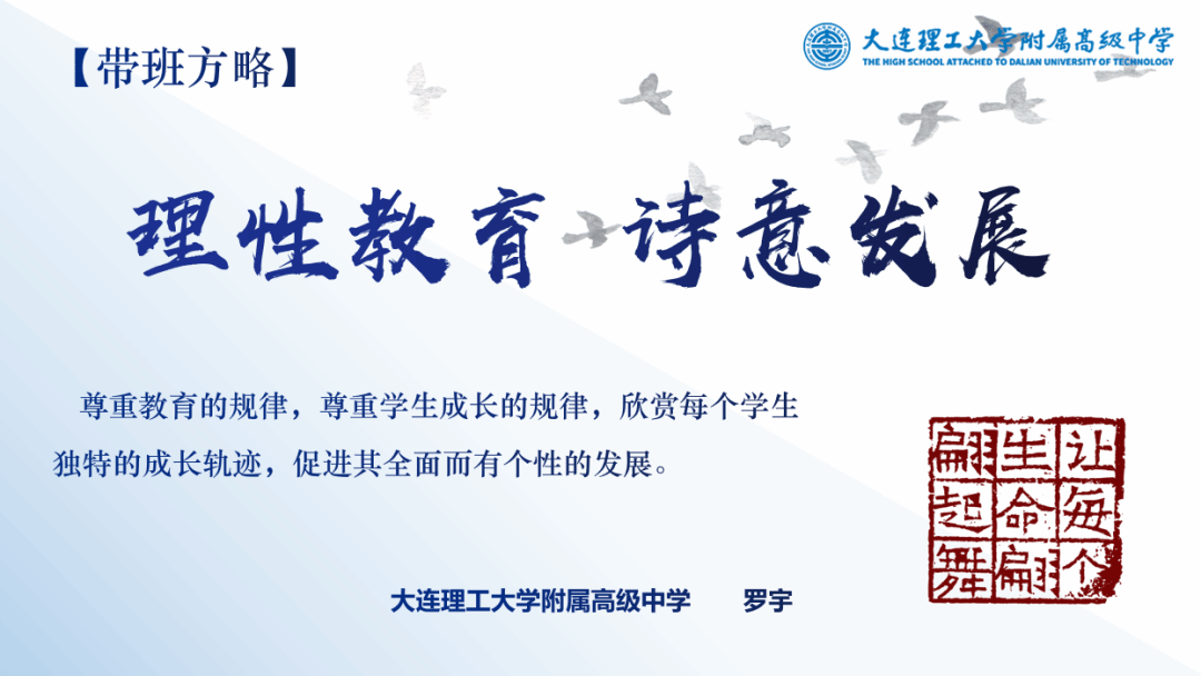 获得2023年大连市班主任基本功大赛高中组一等奖的大工附高罗宇老师、开发区八中刘运佳老师、金州高中王丹华老师展示了各自的带班育人方略作品。