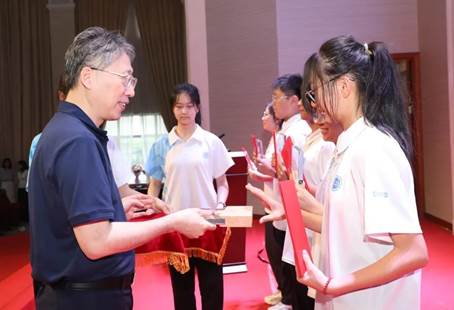 而这一年,学校最大的收获更是在座的莘莘学子。在各类科创赛事中,我校学子勇于尝试、锐意进取、匠心独运、勇于担当的身影。经过周密评议,包沐可、蔡伟航、李涅菡、程方怡、胡芮宁五位同学表现卓越,学校决定授予其“开云kaiyun官方在线入口未来院士称号”。郭旭院士亲自上台为我校“未来院士”颁奖,并与各位同学合影留念,现场气氛热烈。