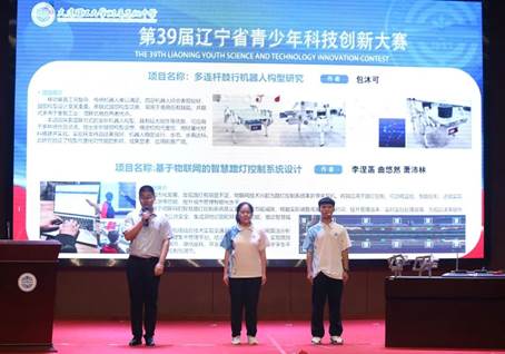 今天,我校科技辅导员曲浩和获奖同学代表包沐可、李涅菡走上讲台,分享他们的科创成果。李涅菡同学带来的项目《多功能智慧路灯》和包沐可同学带来的项目《多连杆肢行机器人构型研究》,充分展现了大工附高学子锐意进取、不断创新、勇攀高峰的卓越品质,他们用扎实的学识、充足的实践让科创落地生根。