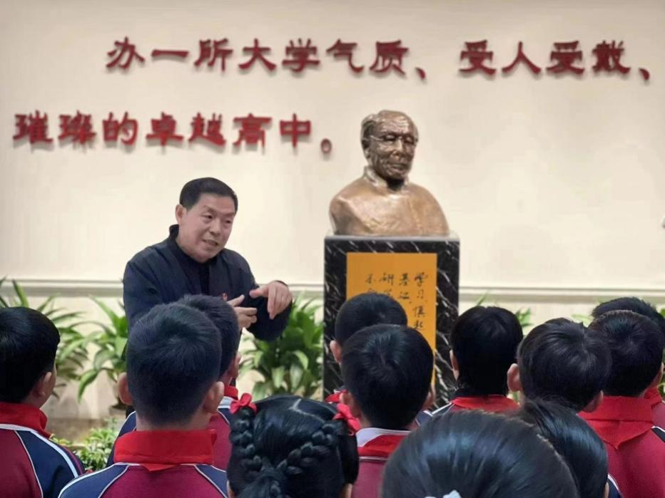 令希厅作是我校校园文化的重要组成部分,通过石磊副校长的讲解,同学们了解到钱令希老先生在科技战线的卓越成就。其半身铜雕像,整体高于常人身高,彰显钱老一生的卓越成就永受后人敬仰。
