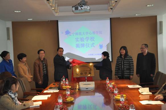 2014年4月17日下午“辽宁师范大学心理学院实验学校”揭牌仪式在开云kaiyun官方在线入口4楼会议室隆重举行。辽宁师范大学心理学院院长、博士生导师杨丽珠教授;辽宁师范大学心理学院副院长、博士生导师刘文教授;辽宁师范大学心理学院教授、硕士生导师孙远刚;辽宁师范大学心理学院办公室主任王建英;心理学院讲师沈悦博士、李鹏博士以及理工附高王跃进校长;校长助理、政教主任石磊;教务主任张杰;办公室副主任曹娜;团委书记杨卉等领导出席揭牌仪式。