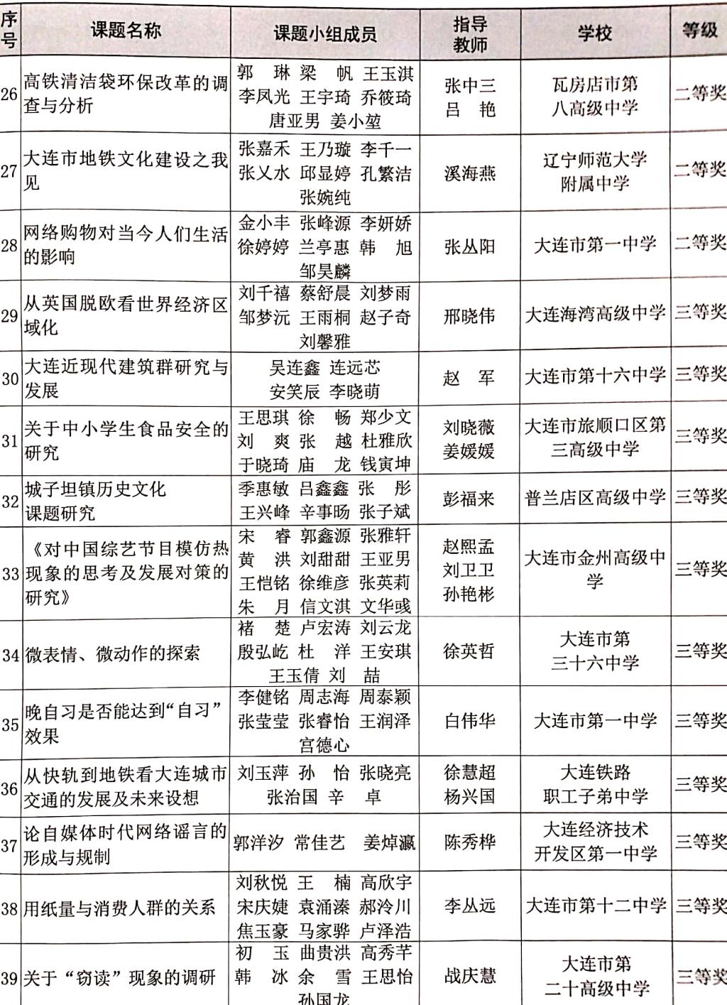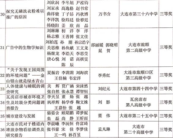 ——近几年大连市研究性学习活动评比获奖课题题目公示