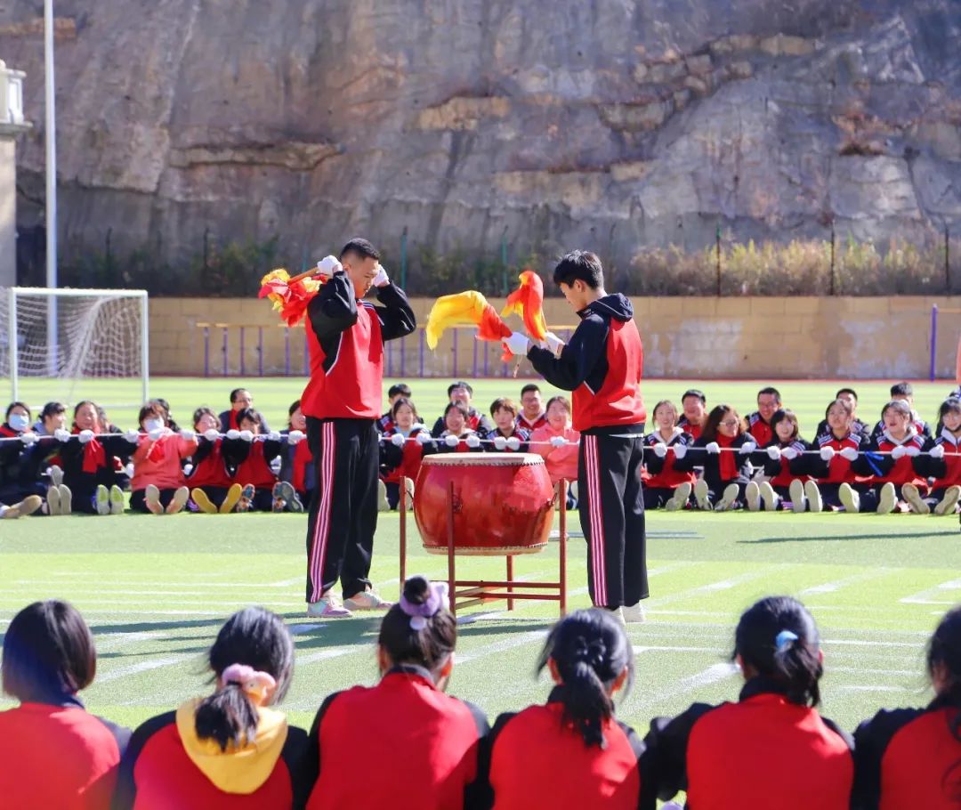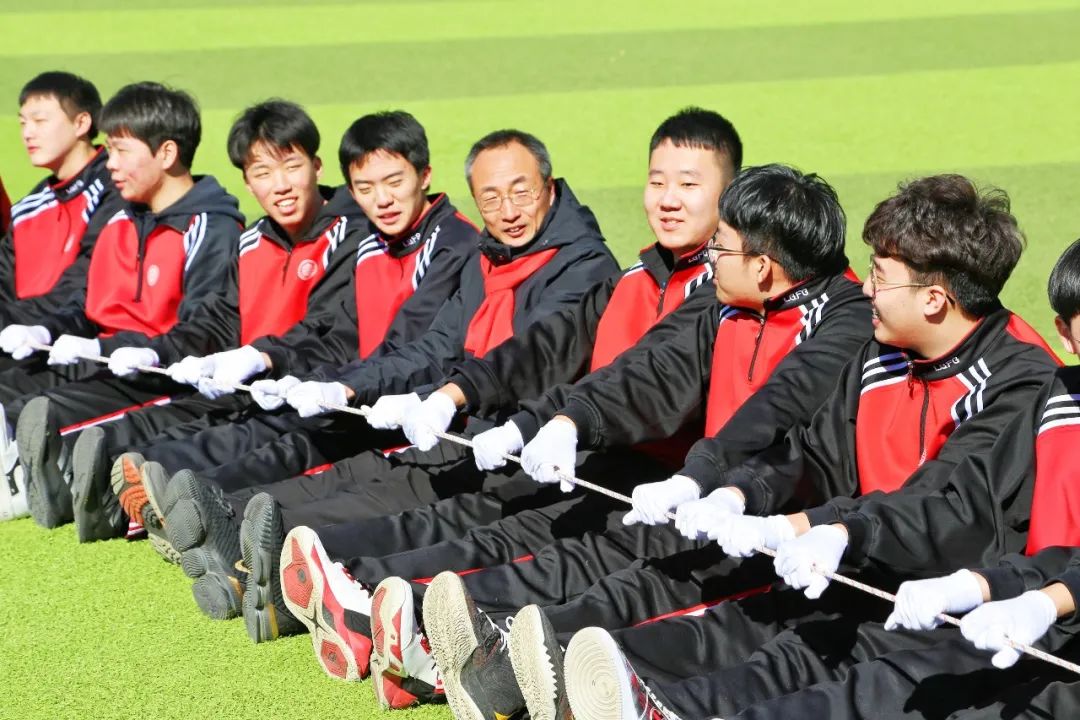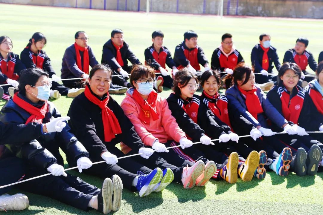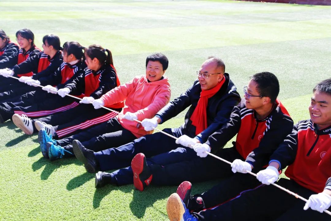 高三全体师生共同把绳子围成一个圆满富有张力的大圆。这个大圆里包含着信任,团结,感恩,坚持……大家心往一处想,劲往一处使,共同舞动手中的圆梦圈,同心同梦,共赢高考。